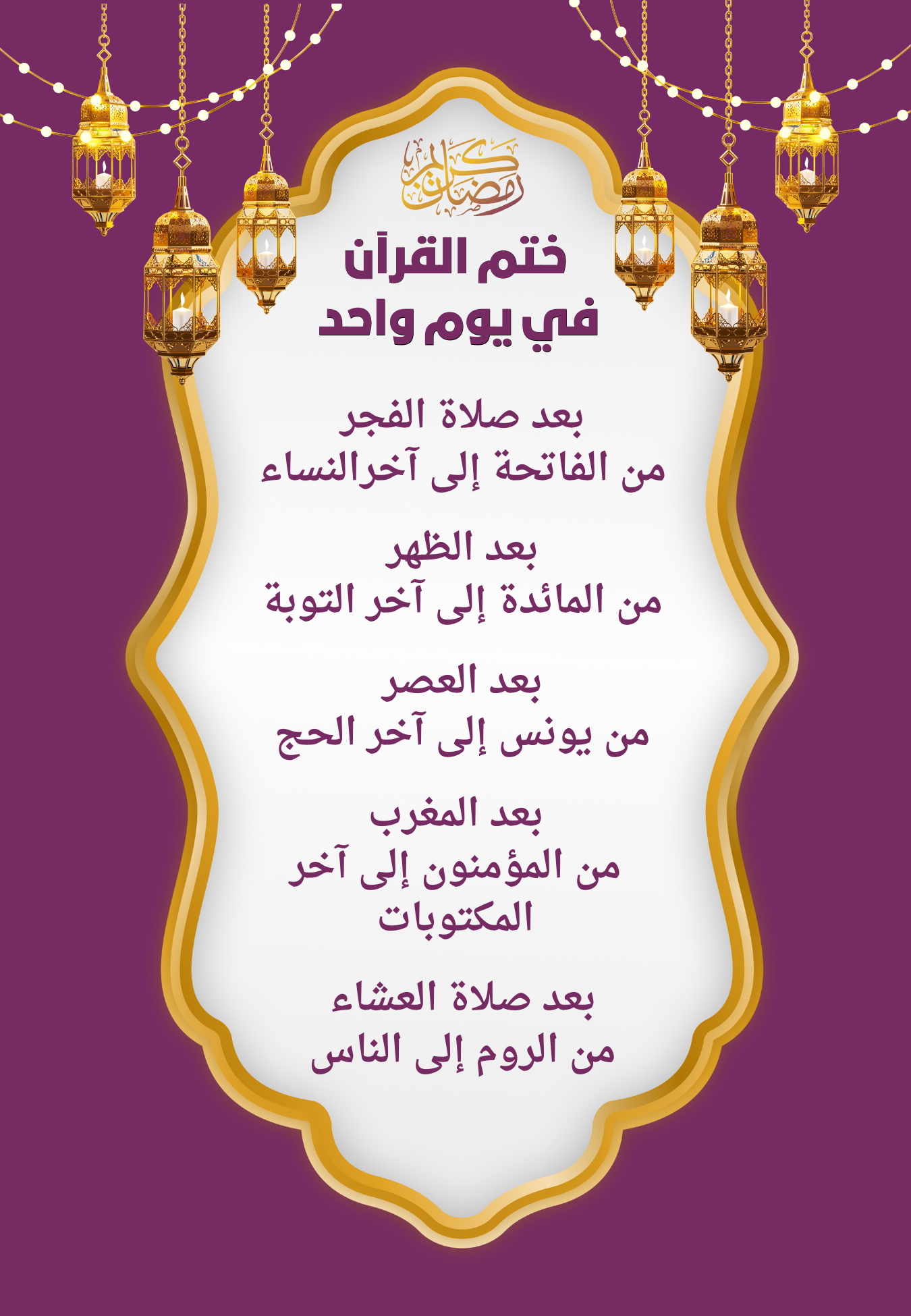 الختم في يوم واحد يحتاج إلى تنظيم الوقت وتركيز عالي.